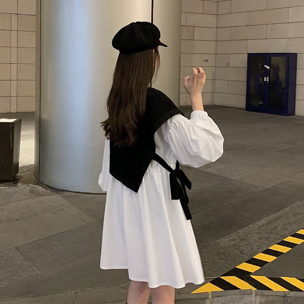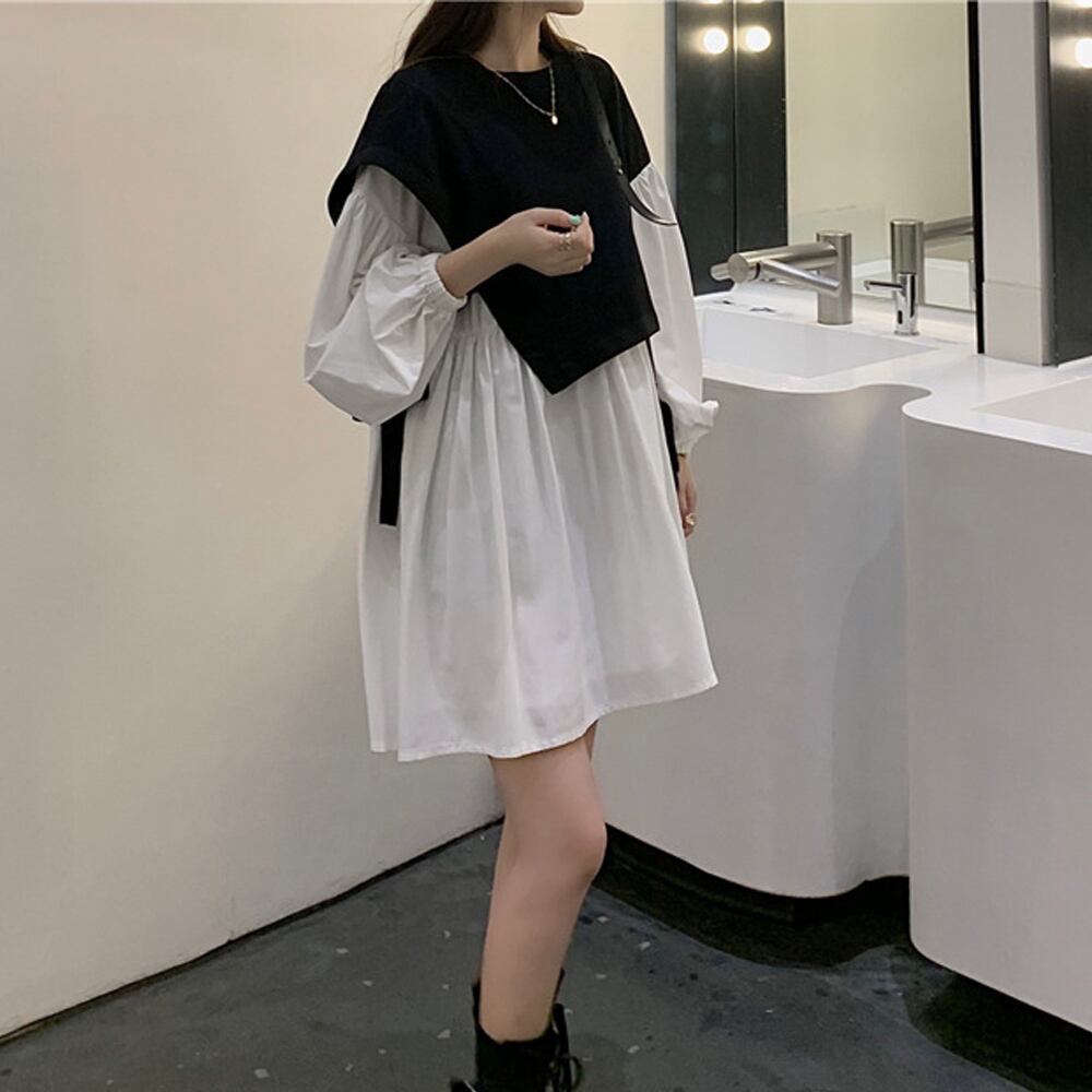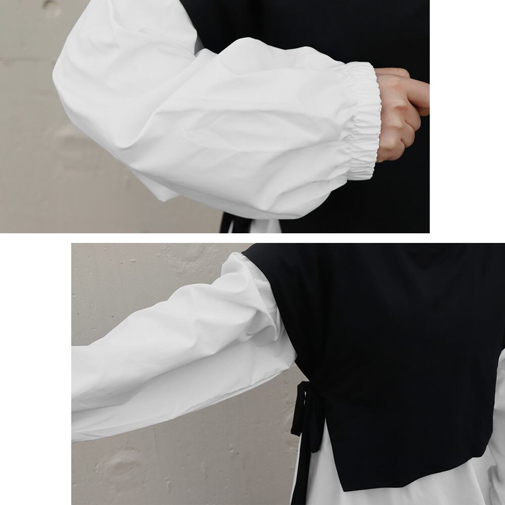 シャツワンピース レディース ベストレイヤード風 長袖ワンピース