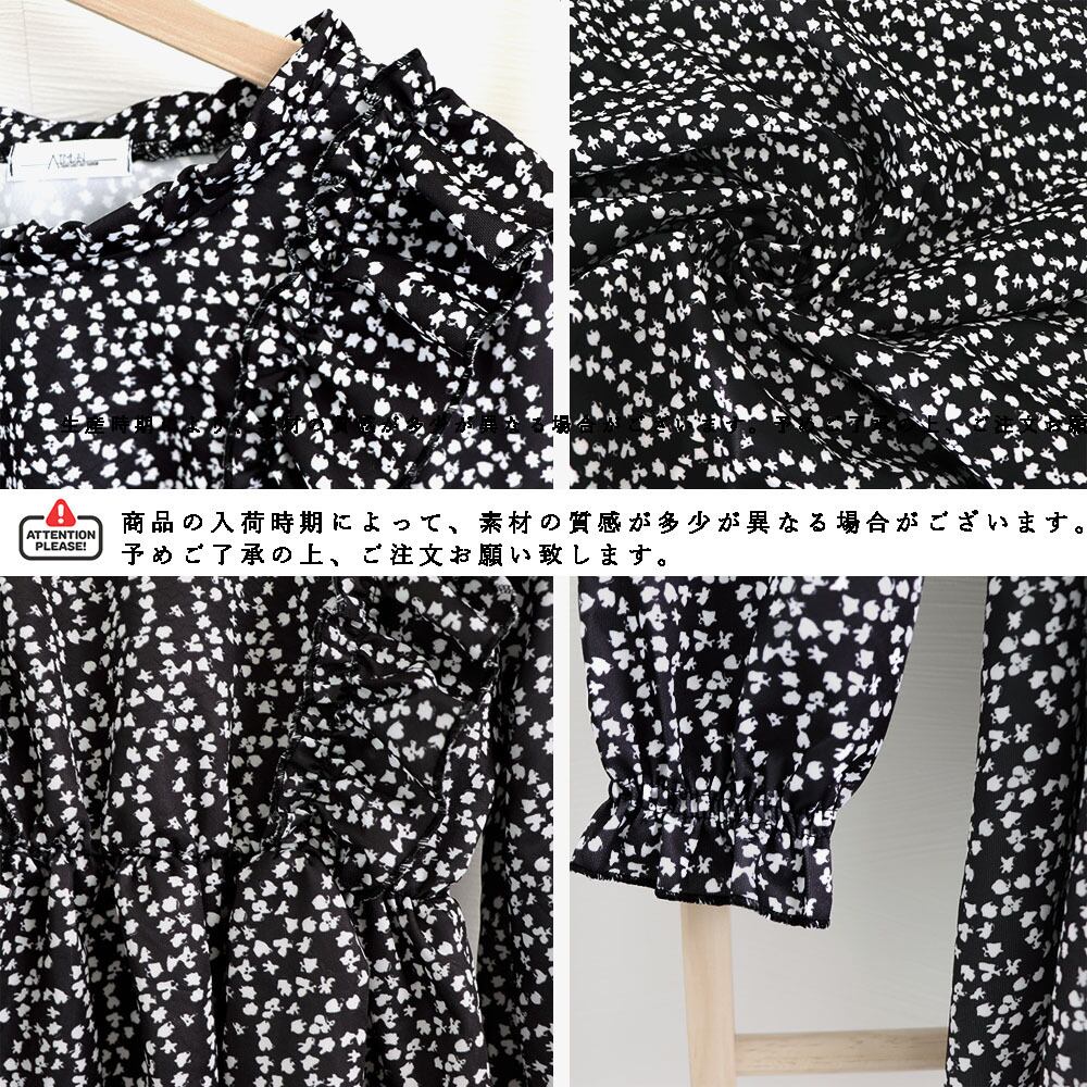 可愛いコーデ花柄黒 ショートワンピース ボリュームスリーブ