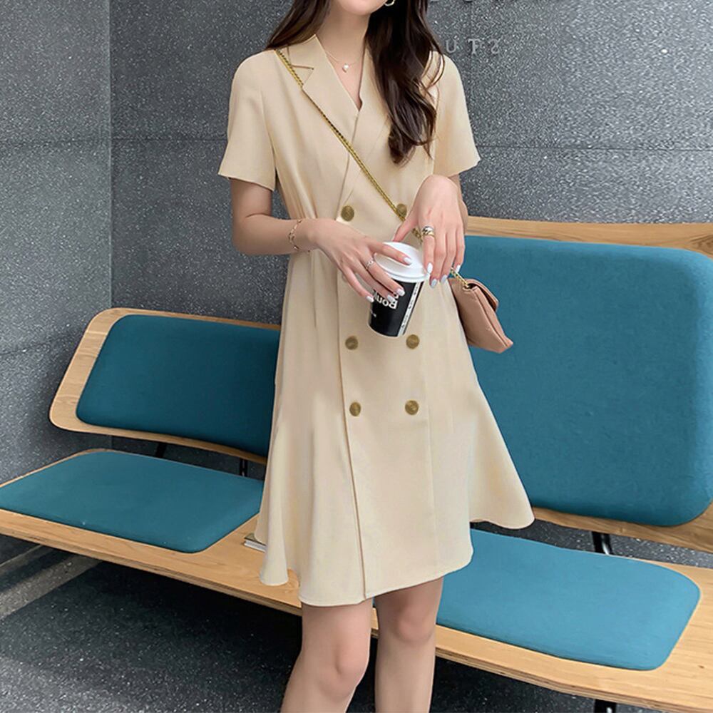 Aラインワンピース ダブルボタンワンピ スーツ風ワンピ春夏
