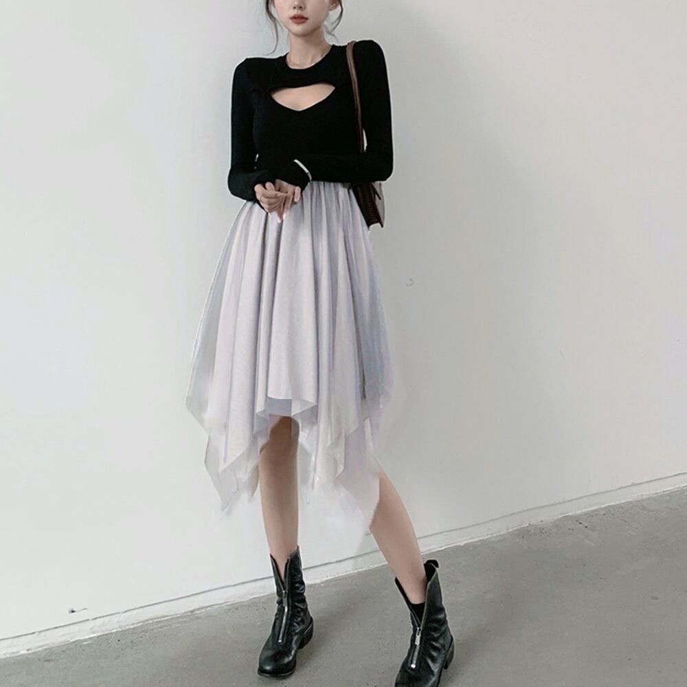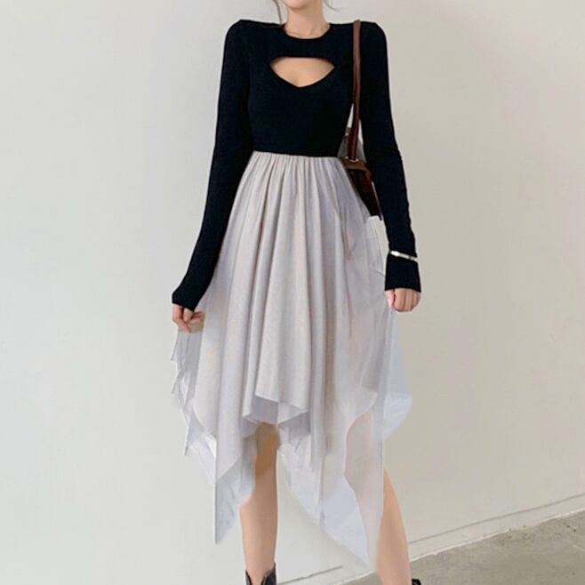 ストリート切り替え ハイウエストワンピ イレギュラーヘム